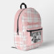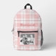 Pink White Gingham Plaid Pattern Name and Photo Printed Backpack