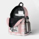 This backpack features a pink and white gingham style plaid pattern with pink on the zipper section and the front pocket section. The backpack also features a custom name on the upper front, and a black and white photo on the front pocket. Replace the placeholder photo with your own favourite to make this backpack your own! A black and white filter is applied so your colour photo will display as black and white too. Try it with your own photo right on the product page!