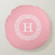 Pink White Greek Key Rnd Frame Initial Monogram Round Cushion