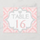Pink, white, grey damask wedding table number postcard