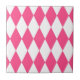 Pink White Harlequin Diamonds Checkers Design Tile