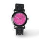 A pink background and large white numbers decorate the face of this kids watch. What a great Christmas or Birthday gift for a child! It can be personalised with child's name, or example text can be deleted. Strap is silver glitter, but is available in other colours. All Rights Reserved © 2014 Marcia Socolik.