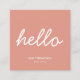A pink and white business card with clean and simple accents. Introduce yourself with this "hello" business card. A simple and professional way to introduce your business. Social media handle and QR code included in the design of this business card for you to use. Personalise your details to create your own unique business card.