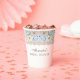 Add a touch of romance to your celebration with these personalised, Peony Blue Hydrangea Bridal Shower Paper Cups. Featuring a romantic arrangement of soft blue and white hydrangeas paired with dusty pink and white peonies, this design exudes elegance. Set against a crisp white background with delicate beige lace details, these cups embody a feminine and sophisticated aesthetic. Inspired by the timeless beauty of Nancy Meyers' decor and fashion, these paper cups are the perfect addition to your floral bridal shower, bringing both charm and style to your event. Ideal for serving drinks at your special occasion, they combine practicality with beauty.