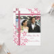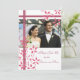 Elegant photo wedding vow renewal invitations in elegant honeysuckle pink and white flowers pattern with fully customizable text to include your vow renewal ceremony details and space to add your own photo.