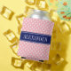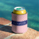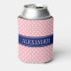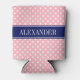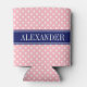 Pink White Polka Dots Navy Name Monogram Can Cooler