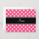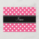 Pink white polka dots personalised name postcard