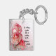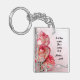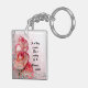 Beautiful key chain with white rose with dark pink trim, and silver border design with quote by Aristotle, "In all things of nature, there is something of the marvellous."
