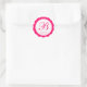 Pink White Scalloped Circle Monogram Thank You Classic Round Sticker