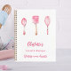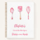 A white coloured background with pink kitchen utensils. Personalise and add your name and a text.