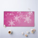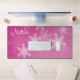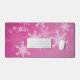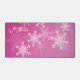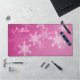 Pink White Snowflakes Minimalist Christmas Name Desk Mat