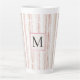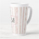 Pink White Snowflakes Stripes Monogram Latte Mug