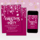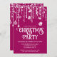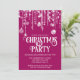 Pink and white string lights Christmas party invitation with a cute whimsical fun for a festive holiday party.