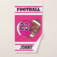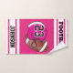 Hand Towel. Featuring a pink background with white jersey stripes and a football and football player's helmet. To complete the design is an area to add a name and sport number which will make the perfect gift for the sport enthusiast in your life. ✔Note: Not all template areas need changed. 📌If you need further customisation, please click the "Click to Customise further" or "Customise or Edit Design" button and use our design tool to resize, rotate, change text colour, add text and so much more. ⭐This Product is 100% Customisable. Graphics and / or text can be added, deleted, moved, resized, changed around, rotated, etc... ⭐99% of my designs in my store are done in layers. This makes it easy for you to resize and move the graphics and text around so that it will fit each product perfectly. 📌 (Please be sure to resize or move graphics if needed before ordering) You can also "TRANSFER DESIGN" on other Zazzle products and adjust the design to fit most of Zazzle items. (button is down on the right side of the page) This design is made with high resolution vector and/or digital graphics for a professional print. 📌NOTE: (THIS IS A PRINT. All Zazzle product designs are "prints" unless otherwise stated under "About This Product" on the left side of this page) The design will be printed "EXACTLY" like you see it on the screen and on the product...so please make sure when you do your changes on the resizing of any of the graphics or text that it fits in the areas correctly and that your spelling and wording is how you like it to be in size, colour and font. If you have any questions about the "DESIGN ONLY" or need help please contact me at ✉ siggyscott@comcast.net or visit my store link: https://www.zazzle.com/store/designsbydonnasiggy (Copy and Paste) I'll be happy to help. 📌 ALL OTHER QUESTIONS (shipping, refund, the printing, the product, etc...) please contact Zazzle or the Maker ⭐DIRECTLY⭐. Thank you for the support and stopping by my store - DesignsbyDonnaSiggy. © Donna Siegrist⭐⭐⭐ ZAZZLE promises 100% satisfaction. If you don't absolutely love it, Zazzle will take it back! ⭐⭐⭐ 1-888-8ZAZZLE (1-888-892-9953) Phone hours: Mon - Fri: 9AM - 5PM PT (12PM - 8PM ET)