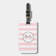 Stylish and trendy Pink and white stripes with Black initials monogrammed Luggage tag.