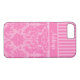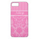 Personalised modern pink and white damask with stripes iPhone 7 case.