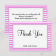 These “Pink/White Stripes Framed Thank You Cards” are designed to leave a lasting impression on your loved ones as you show your appreciation for their presence and thoughtful gestures. The clean design can be used for any occasion, whether you're thanking guests for attending your wedding, shower, or any other special event, these cards offer a versatile and stylish way to do so. Order today!