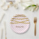 Pink & White Stripes with Gold Hearts Party Paper Plate