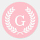 Pink White Wheat Laurel Wreath Initial Monogram Classic Round Sticker
