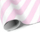 A pink and white wide stripe holiday wrapping paper featuring pink wide stripes on the diagonal.