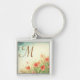 Pink Wild Flowers Field Country Antique Vintage Rustic Monogram Initial Key Chain
