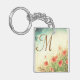 Pink Wild Flowers Field Country Antique Vintage Rustic Monogram Initial Personalised Key Chain