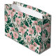 Pink Wild Rose Flowers & Green Leaves Pattern Large Gift Bag
