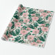 Pink Wild Rose Flowers & Green Leaves Pattern Wrapping Paper