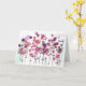 A blank note card featuring a meadow of whimsical wildflowers in shades of pink painted in watercolor.