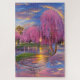 Pink Willow trees at sunset by the pond Jigsaw Puzzle