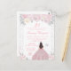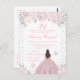 This elegant and glamourous winter birthday invitation features a beautiful princess with brunette hair and fair skin in a pink ball gown. The text combines handwritten script and modern sans serif fonts for a classy and sophisticated look. The floral arrangements, snowflakes and silver confetti create the perfect blend of rustic and chic.