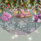 Pink Winter Christmas Country Scene Fleece Tree Skirt