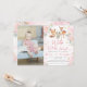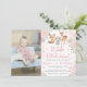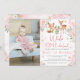 Cute pink woodland forest animals and pink gold flowers Winter Onederland girl first birthday party photo invitation.