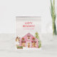 Spread cosy cheer with this Pink Winter Village Watercolor Cosy Cat Christmas Card. The front features a picturesque, snowy pink cottage scene with the greeting "Happy Holidays!". The inside reveals a gorgeous, warm fireside scene with a decorated Christmas tree and a red upholstered armchair, where a cat and dog sleeping comfortably on the floor. The reverse side depicts a beautiful snowy landscape with a rabbit sitting in front of a distant, illuminated wooden Church. This whimsical, blush-toned card is Customisable and available as an Instant Download. It is perfect for pet lovers and anyone who loves a cottagecore winter aesthetic. Complete your mailing with the matching Pink Winter Village Watercolor Mailing Accent Envelope. Click 'Personalise' to easily update your details and spread joy this season.
