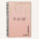 Simple, but elegant "To Do List" notebook features a gold glitter spatter on the top against a pale pink background. Across the middle it says To Do List and at the bottom you personalise it with your name.