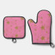 Pink with Gold Stars Oven Mitt & Pot Holder Set