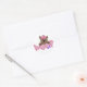 A fluffy dog wearing a pink bow and text that reads "Woof" is featured on cute dog T-shirts, tote bags, stickers, mugs, mousepads, and more!