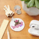 A fluffy dog wearing a pink bow and text that reads "Woof" is featured on cute dog T-shirts, tote bags, stickers, mugs, mousepads, and more!