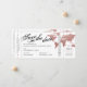 Boarding Pass Save the Date Aeroplane Ticket Card with an elegant modern world map design in rose gold faux foil. All text and background colours are editable so you can fully personalise the design of the template. Guests LOVE receiving these designed destination or travel theme wedding or vow renewal announcements. Visit the Custom Paper Works designer collection for coordinating items.
