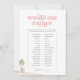 Pink Would She Rather Baby Beach Shower Game Invitation