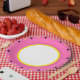 Fun yellow and black polka dots against bright pink border. White centre circle outlined in bright yellow. Bright geometric pattern. Original Design © TamiraZDesigns.