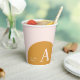 This modern coffee paper cup features a simple initial with stylish colour blocks( Blush Pink & Mustard Yellow). Add your marketing information to this custom cup. You can use this personalised cup at your business place, shops, company event or, etc.