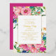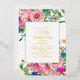 Elegant and colourful pink, blue, and yellow watercolor floral with gold glitter on a white 100th birthday party gold foil invitation for women. Contact the designer for help with customisation or to request matching or coordinating products. The text on this card is completely customisable and can be designed for a party celebrating anyone of any age.