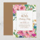 Elegant and colourful pink, blue, and yellow watercolor floral with gold glitter on a white 40th birthday party invitation for women. Contact the designer for help with customisation or to request matching or coordinating products. The text on this card is completely customisable and can be designed for a party celebrating anyone of any age.