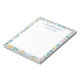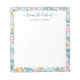 Floral from the desk of notepad in white with a border featuring a flower pattern with yellow, pink, white, and pale blue flowers. From the desk of is written in a pretty script with your name beneath in blue.