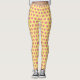Legging design features an original marker illustration of a wedge of pink citrus fruit grapefruit, printed on a yellow background.