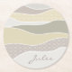 Pink Yellow Green Curved Stripe Abstract Wave Name Round Paper Coaster