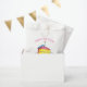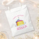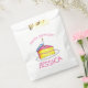 Favour bag features an original marker illustration of a slice of yellow birthday layer cake, topped with pink frosting and a candle, and HAPPY BIRTHDAY in a fun font. Just personalise with your information.