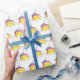 Created from a series of original marker illustrations, this gift wrap features a slice of yellow birthday cake topped with pink frosting and a candle.