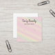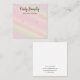 Pink Yellow Stripes Earring Display Square Business Card. A trendy chic design with adjustable earring hole elements, and optional text. Personalise the front of the card with your custom name and title. The reverse side with your business contact details. Further editing option on the product page.